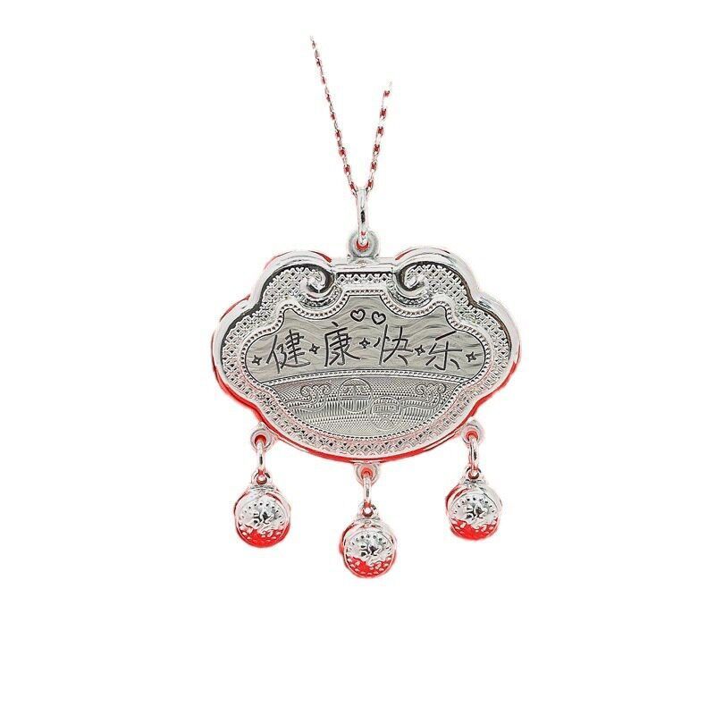 9999足银锁包婴儿健康成长福字长命锁吊坠小孩平安锁宝宝满月礼物
