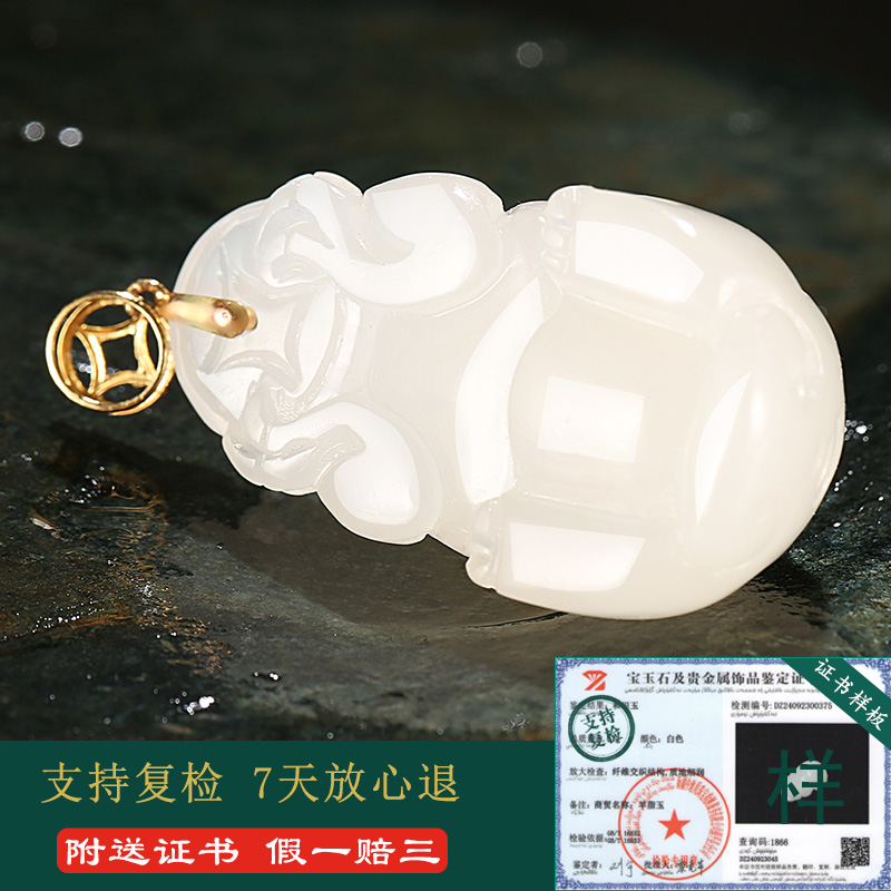 玉说和田玉羊脂玉貔貅吊坠男女款玉坠皮休宝宝瑞兽玉石挂件附证书