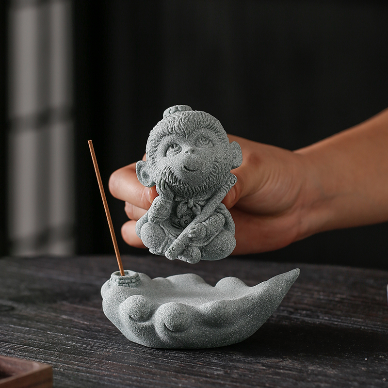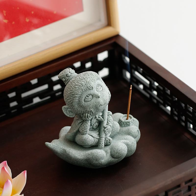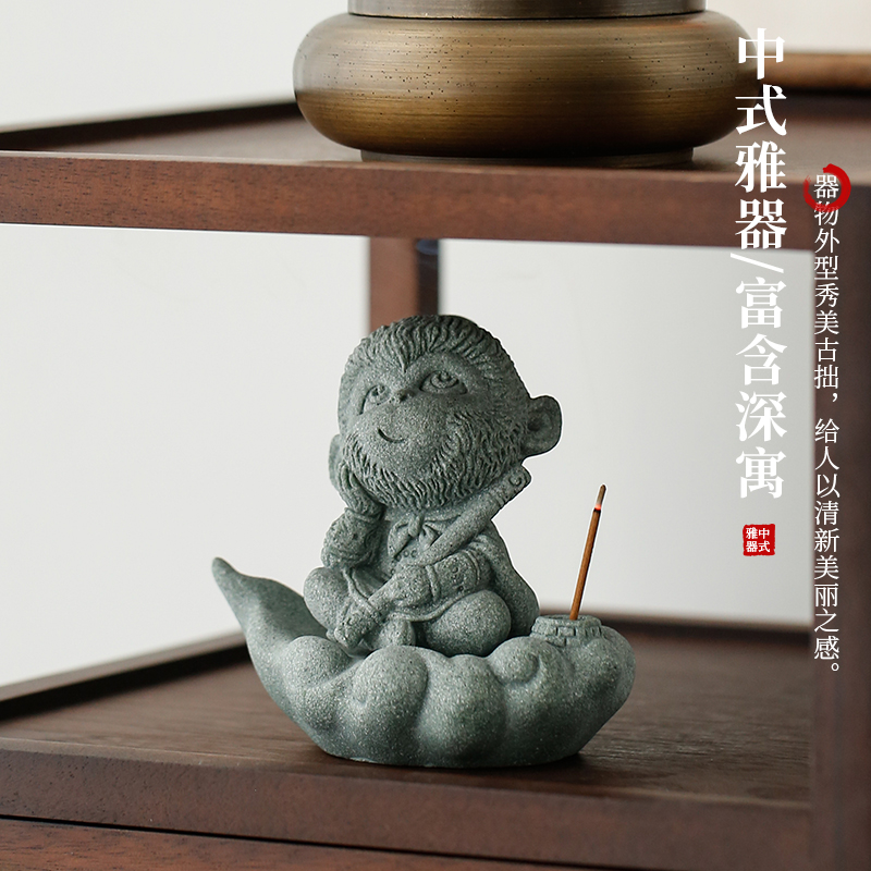 创意孙悟空可爱小猴子线香插茶宠摆件齐天大圣香薰炉桌面造景装饰