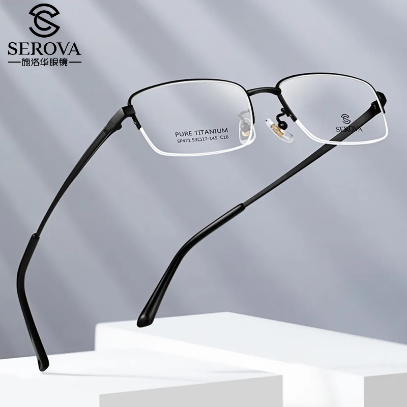 新款施洛华眼镜框超轻钛架商务男士半框黑色可配变色防蓝光SP471