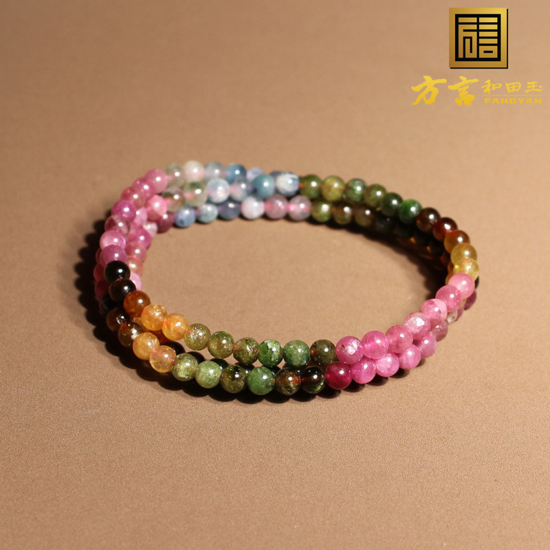 方言放漏价精品佩戴级特色巴西原石原矿多色碧玺多圈手串手链V5