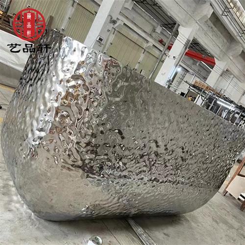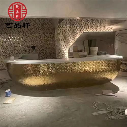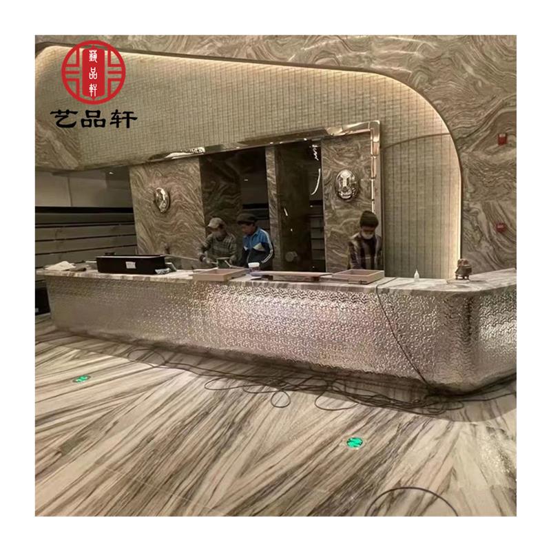 现代酒店不锈钢镜面水波纹吧台雕塑公司餐厅金属装饰前台摆件