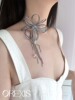 OREXIS原创银色花朵水晶小众复古辣妹钛钢项链锁骨链颈链女