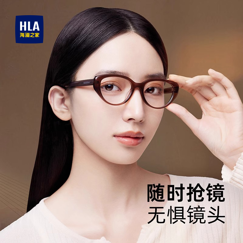 海澜之家猫眼近视眼镜黑框橘猫可配度数女防蓝光素颜显瘦新款镜架