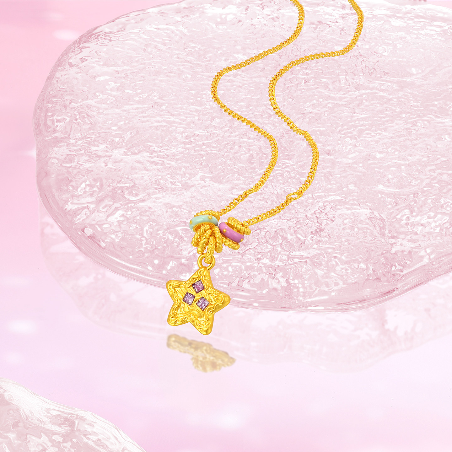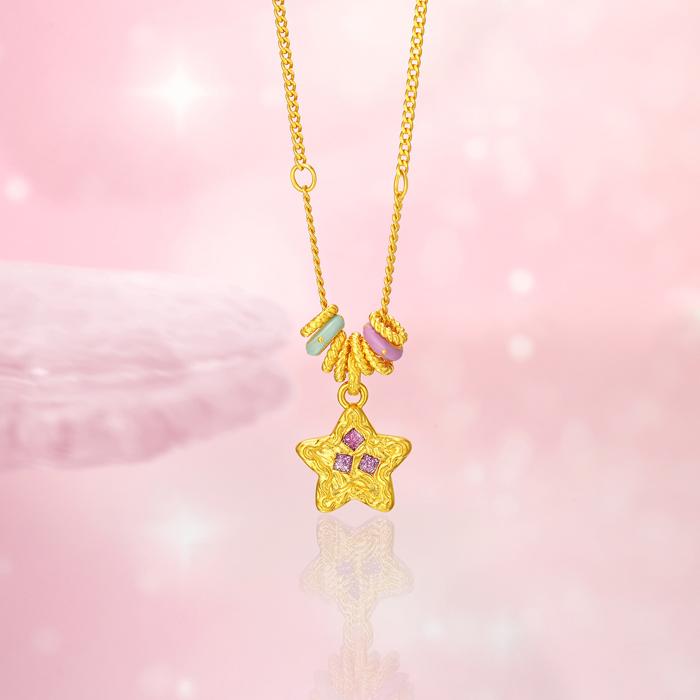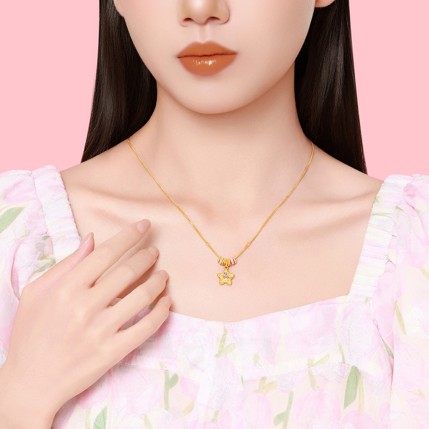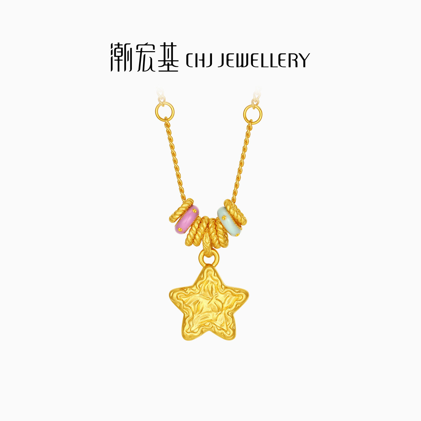 潮宏基陨石星星黄金项链彩色鎏彩跑环金圈足金套链圣诞礼物 计价