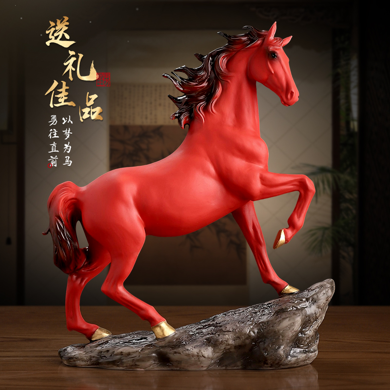 中国红陶瓷骏马摆件马到成功办公室轻奢乔迁开业定制礼品高档礼物