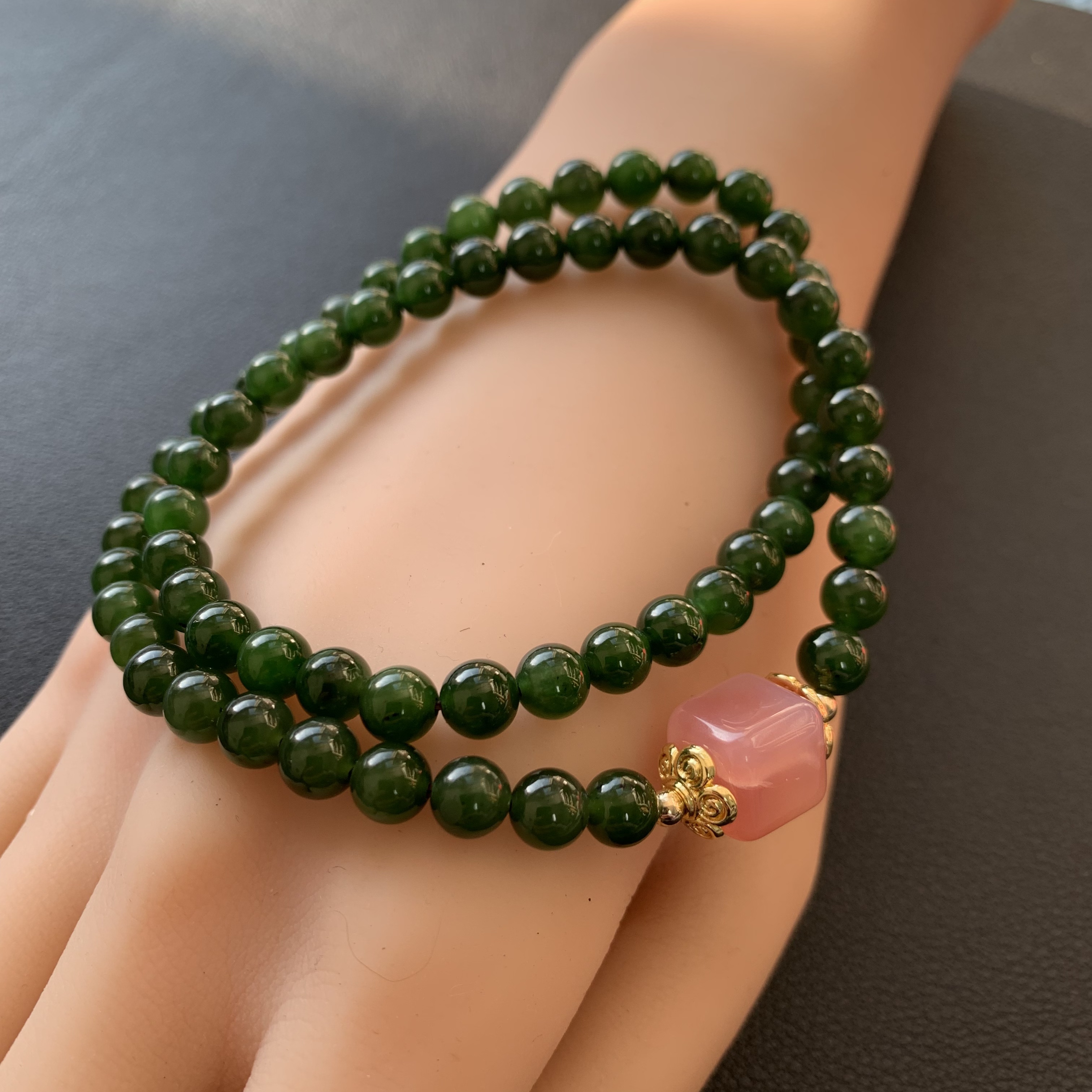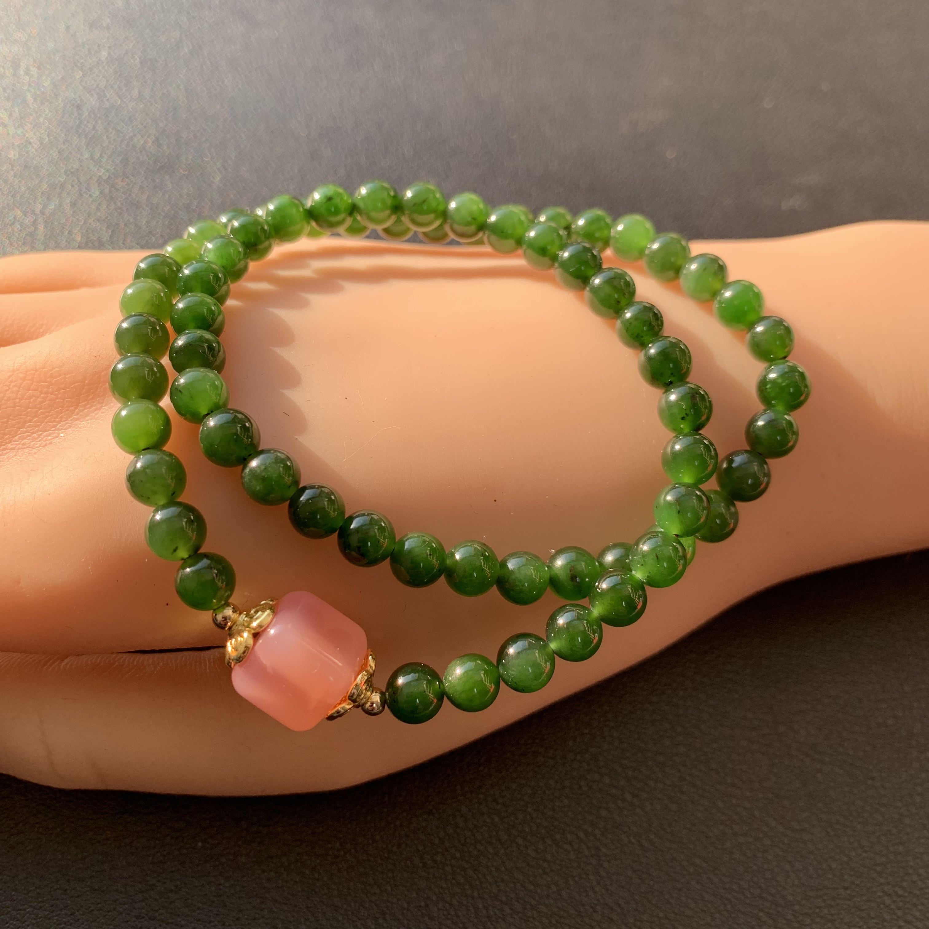 【新品双圈】天然和田碧玉圆珠手链手串卡6mm