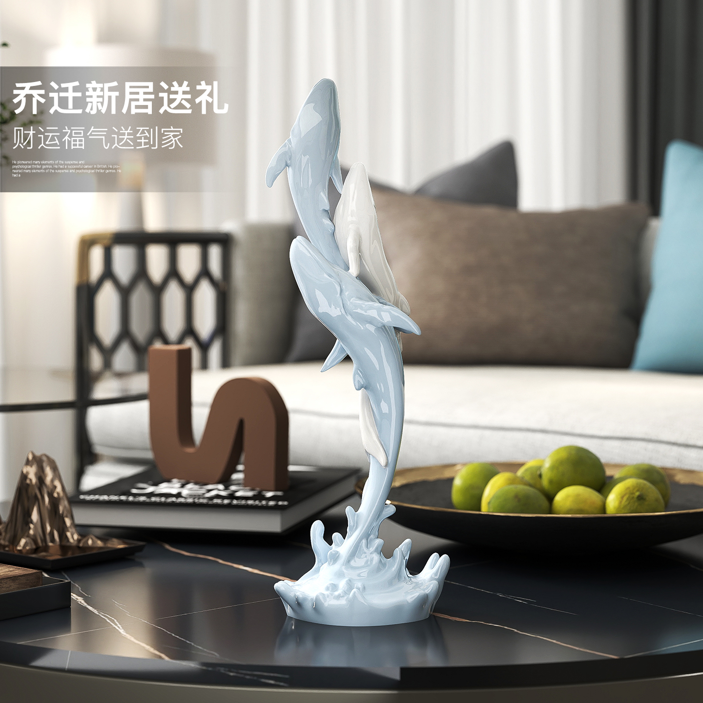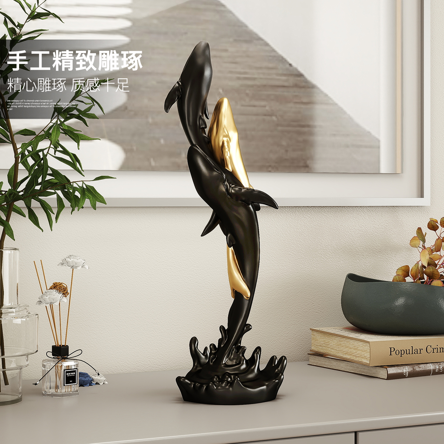 创意鲸鱼桌面摆件客厅电视柜酒柜装饰品办公室书房高级感乔迁礼物