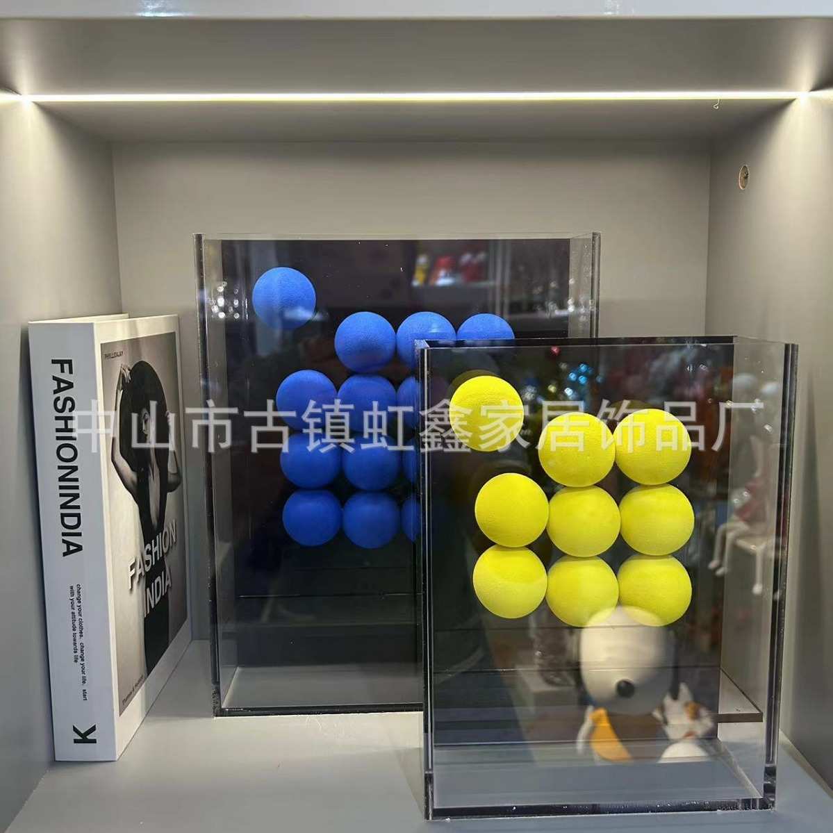 现代亚克力海绵球装饰画创意摆件相框客厅家居桌面克莱因蓝装饰品
