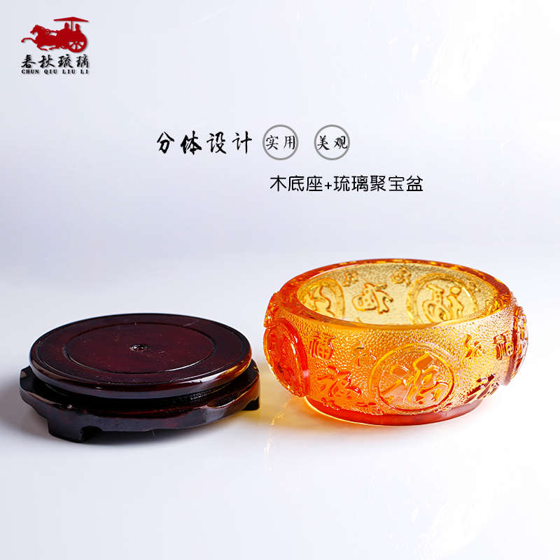 琉璃聚宝盆玄关钥匙收纳碗五福摆件客厅家居饰品脱蜡烧制工艺品