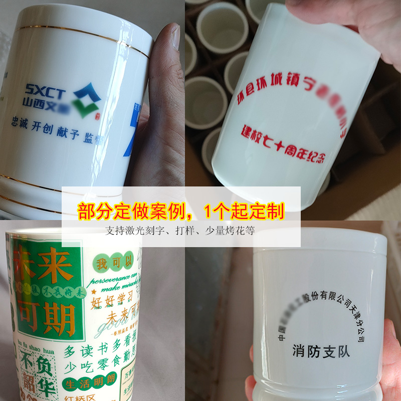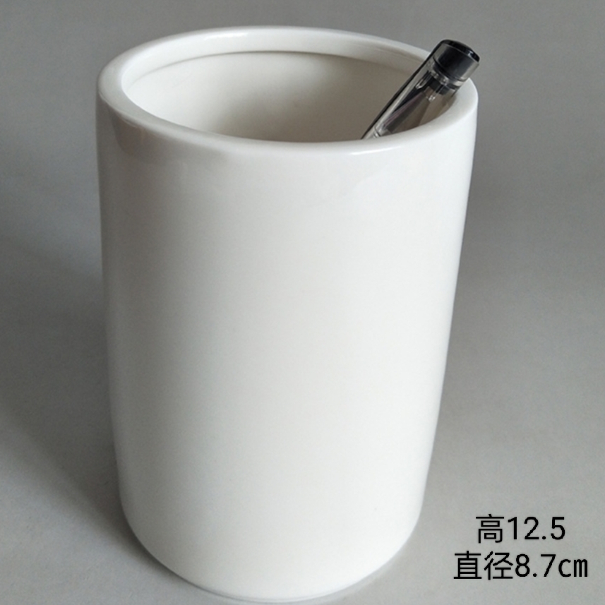 刻字定制logo陶瓷摆件白色毛笔定做笔筒摆设办公室桌面瓷器装饰品