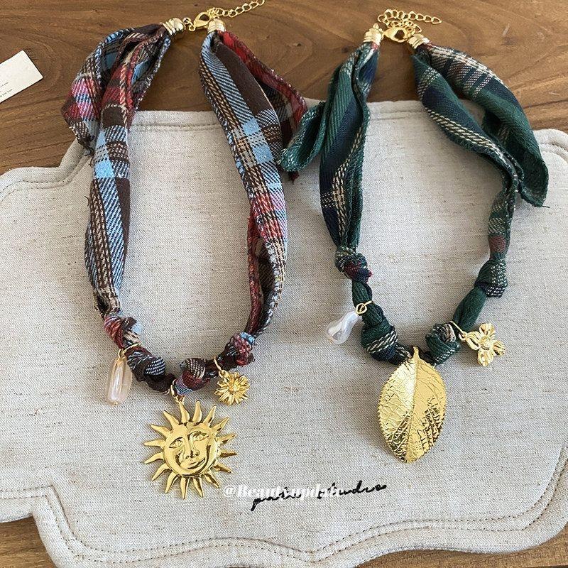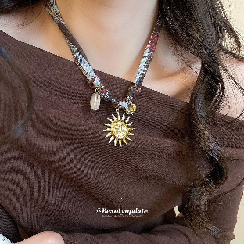跨境太阳独特布艺吊坠个性简约欧美毛衣链项链潮流颈链小众设计感