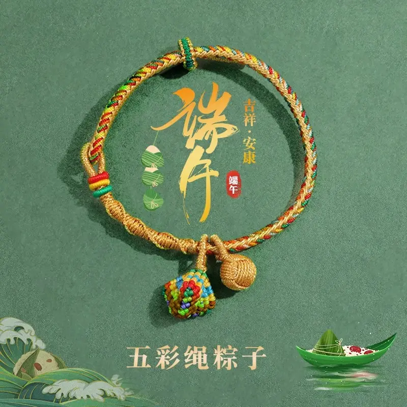 古风端午节五彩绳新中式手工编织手绳可爱小粽子虎头红绳手链