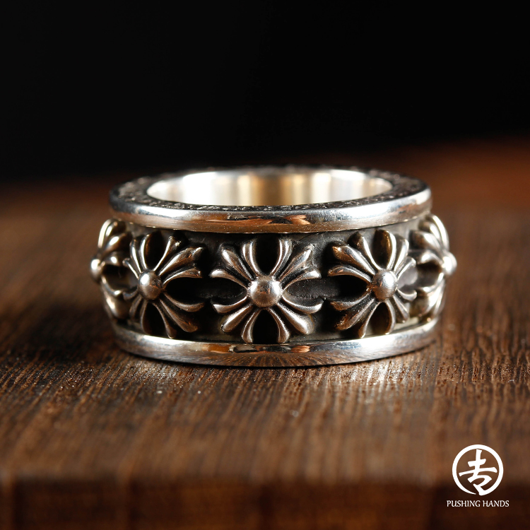 【专注君】克罗旋转戒指 可转动 复古纯银简约情侣十字架银饰朋克