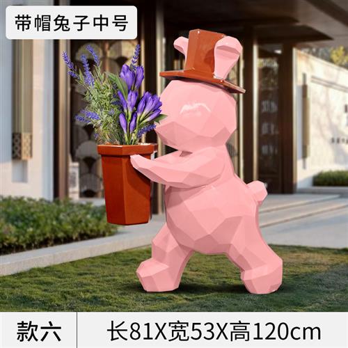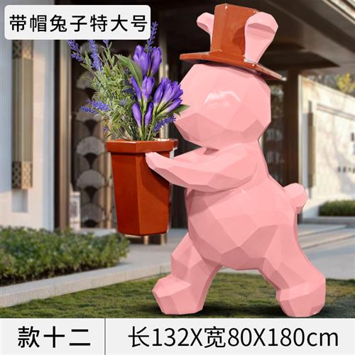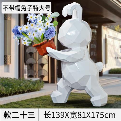 几何大兔子摆件可妮兔网红店门口商场装饰大型卡通玻璃钢雕塑定制