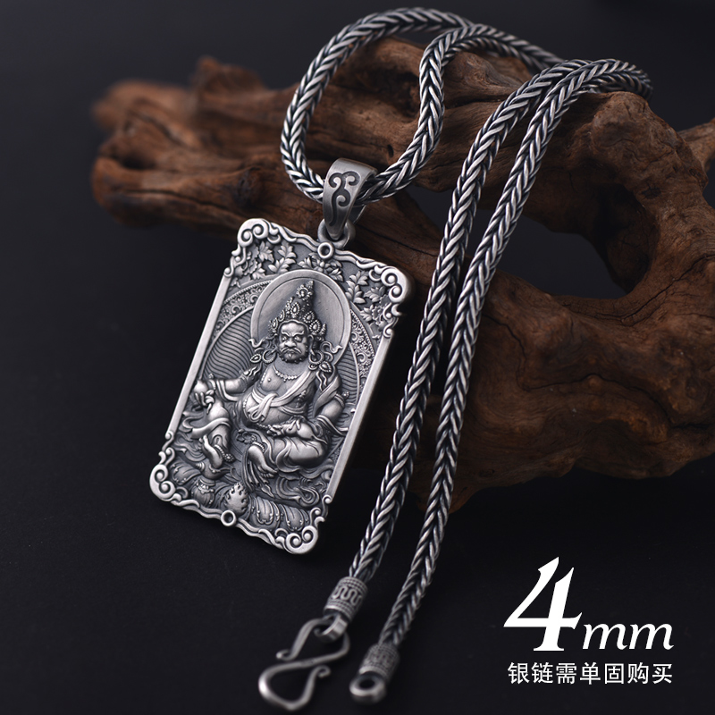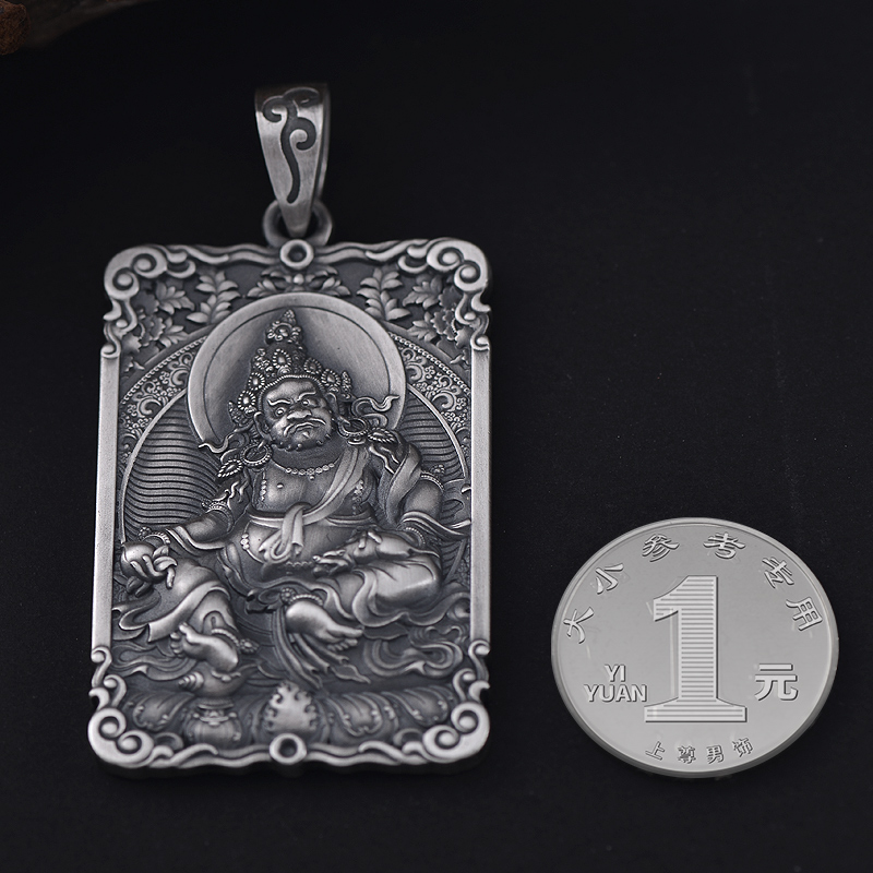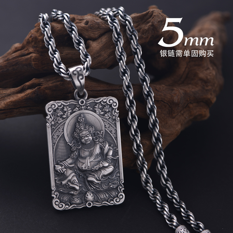 黄财神诺拉吊坠男999足银挂件占巴拉护法神佛牌复古饰品上尊男饰