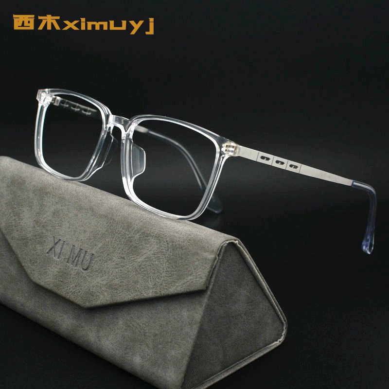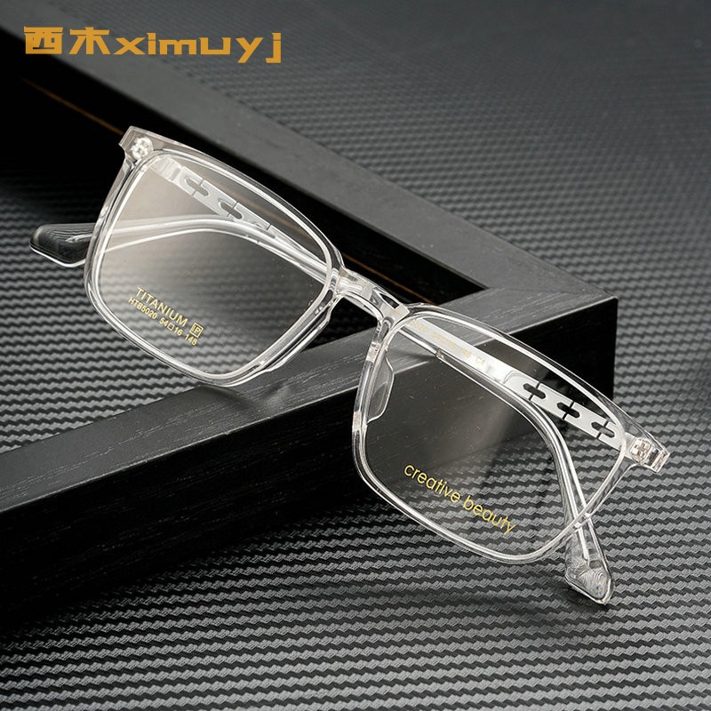 高端超轻板材方框近视眼镜纯钛镜腿透明眼镜架商务男大脸增高鼻托