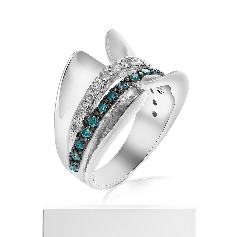 自营 vir jewels 3/4 cttw 蓝色和白色钻石戒指 .925 纯银配铑 -