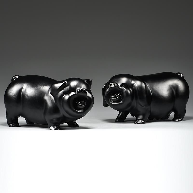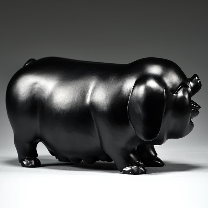 黑色木质猪摆件实木雕刻十二生肖黑色猪吉祥物客厅补角装饰工艺品
