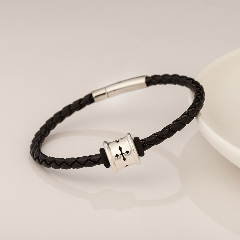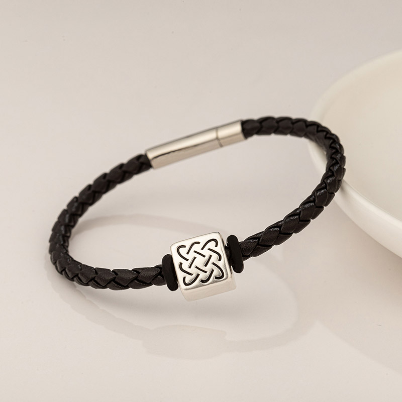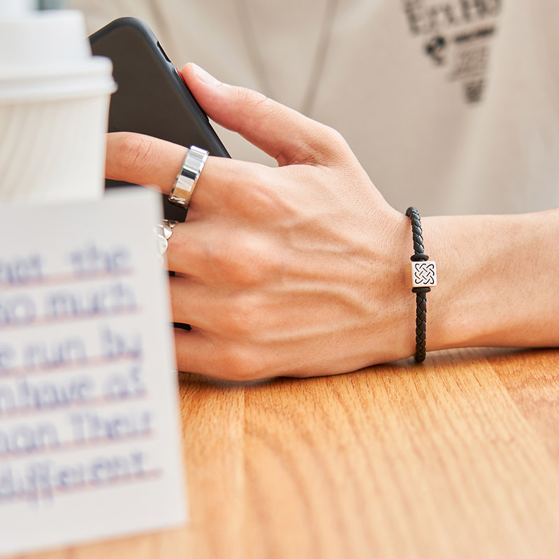 手链男款S999纯银转运珠高级感男生礼物简约黑色真皮编织皮绳手绳
