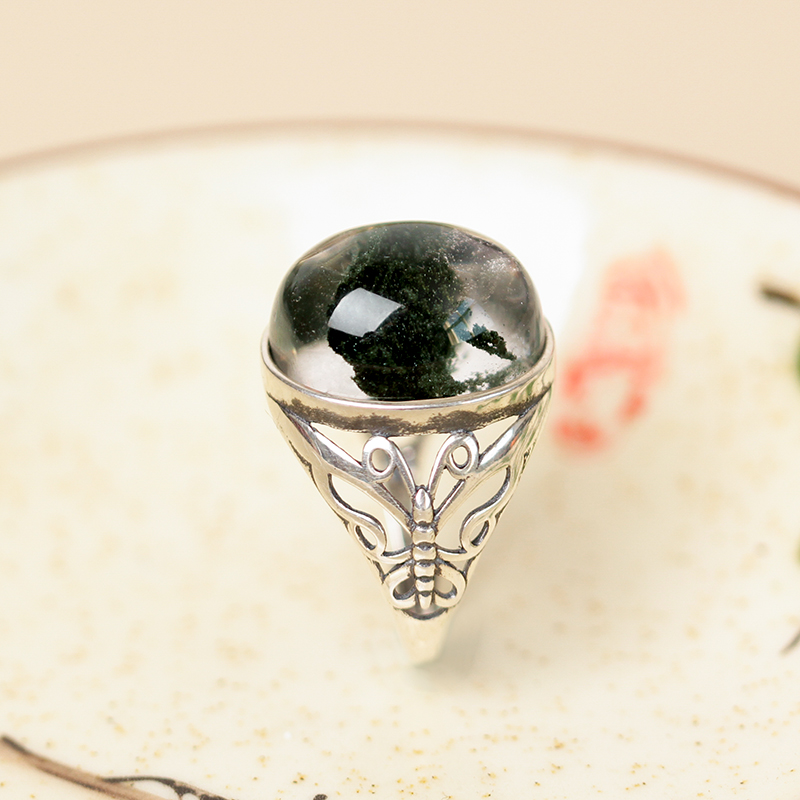 天然绿幽灵戒指男女款异象幽灵水晶包裹净体聚宝盆主正财鬼佬财神