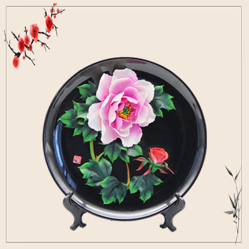 牡丹雕盘 手工制作车载摆件软陶DIY创意生日礼物陶泥公仔装饰品可