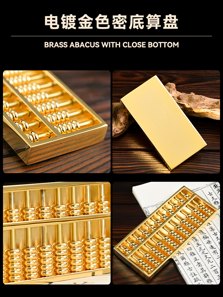 镀金黄铜算盘密底金算盘摆件钥匙扣老式有底小算盘家居装饰品挂件