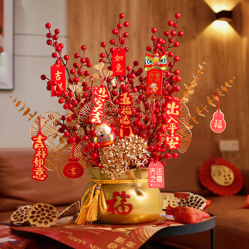 入宅新居结婚乔迁l之喜装饰摆件发财福桶插花新居客厅布置用品礼