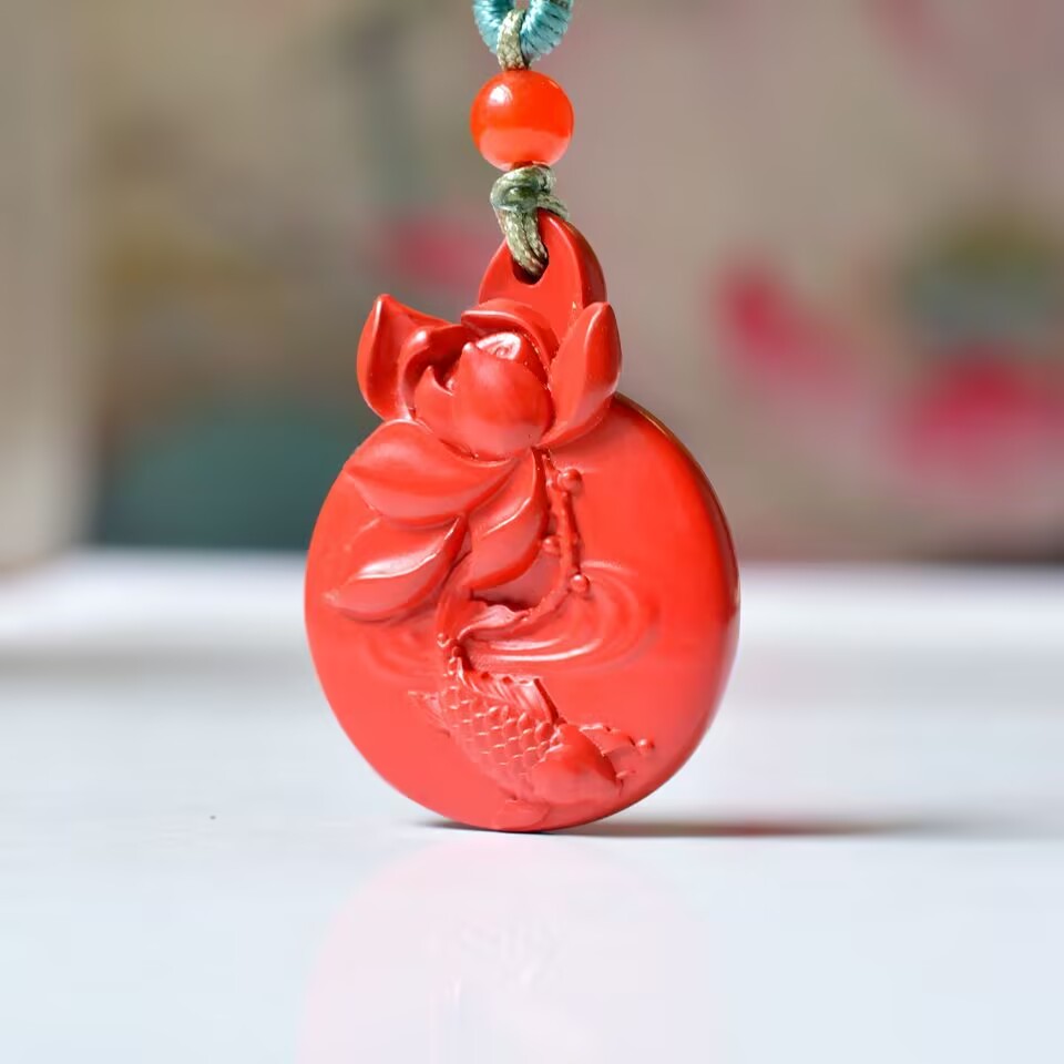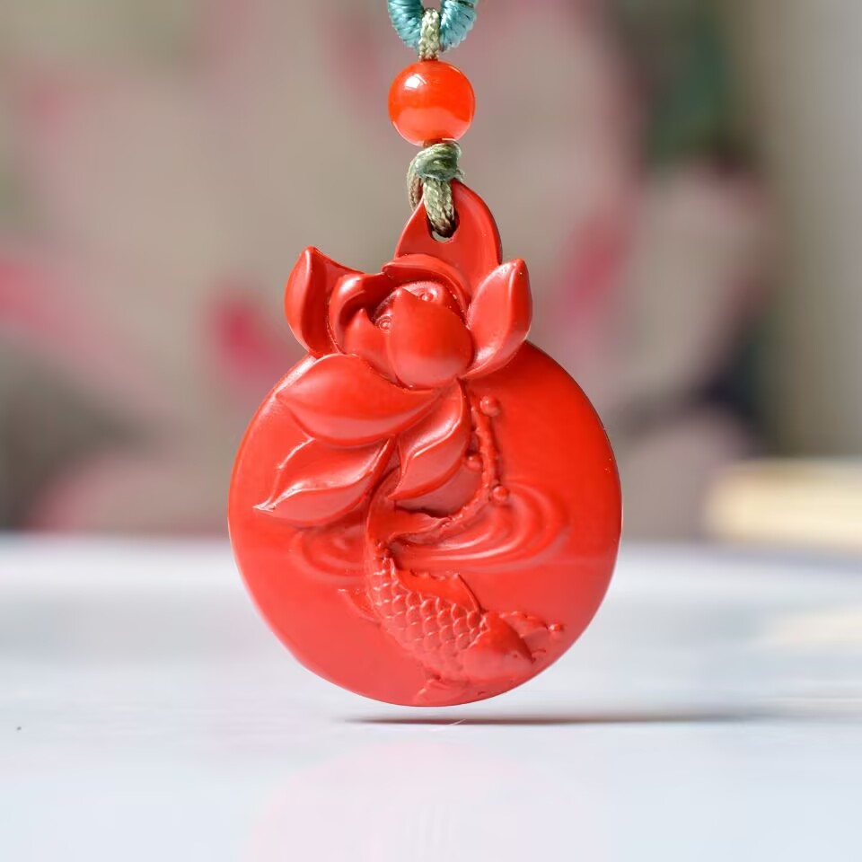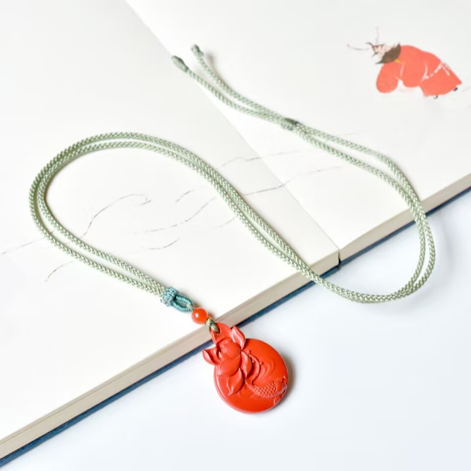 精品红色朱砂连年有鱼吊坠女款小众设计高级感国风项链挂坠饰品