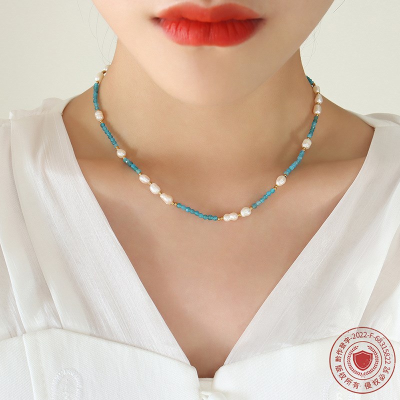 波西米亚饰品潮流时尚通勤彩色石头珍珠项链小众设计中.古潮流首