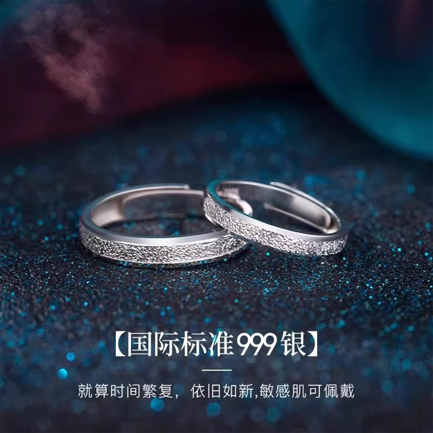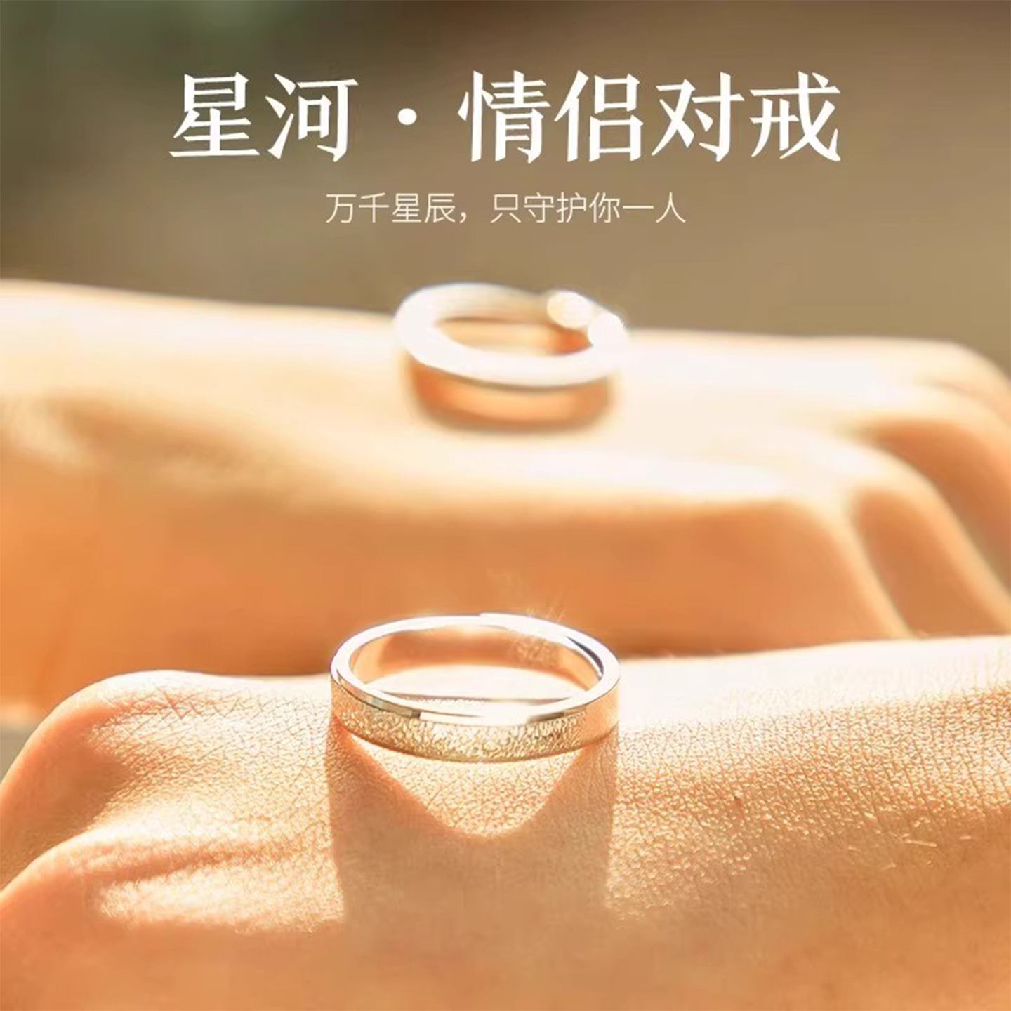 s999纯银情侣戒指女一对小众设计感素圈对戒七夕情人节礼物送女友