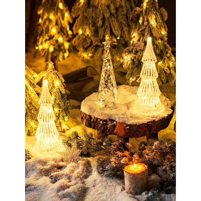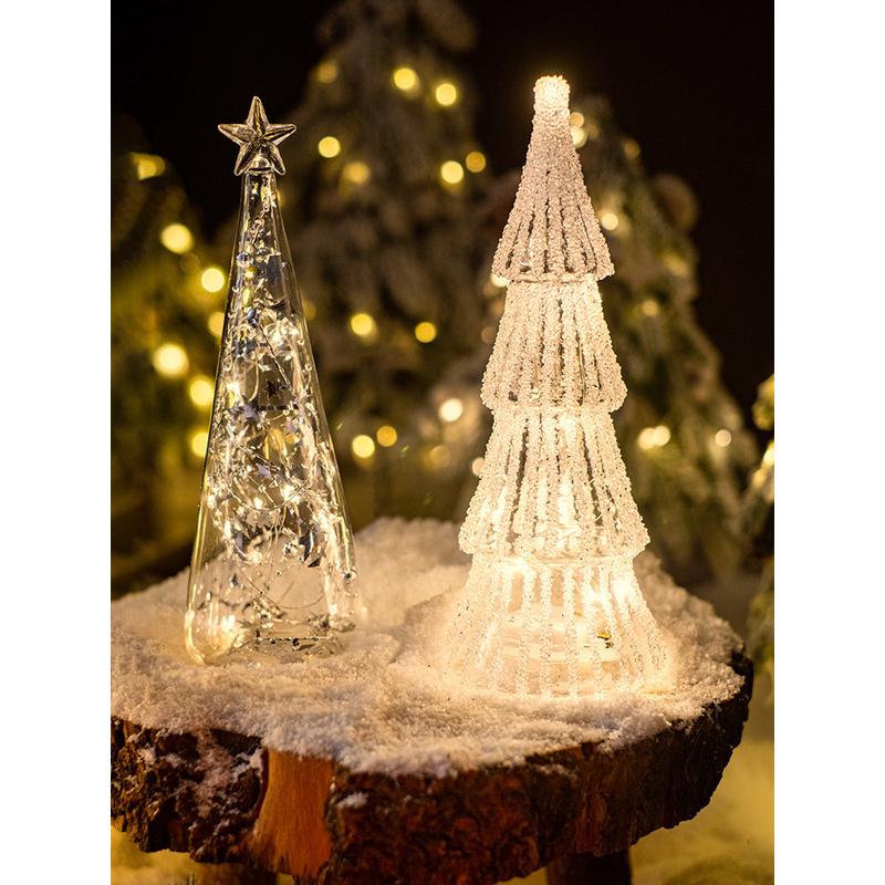 1vpr圣诞树玻璃灯桌面摆件装饰灯闪亮发光小夜灯商场橱窗场景布置