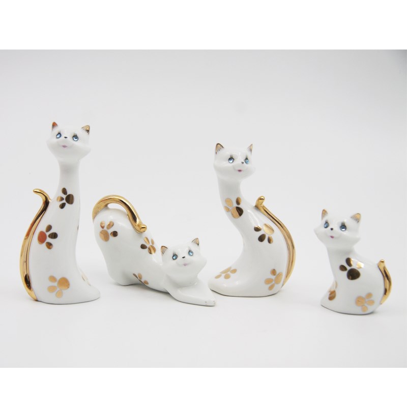 简约创意陶瓷可爱卡通小猫手工描金时尚婚庆礼品客厅桌面家居摆件