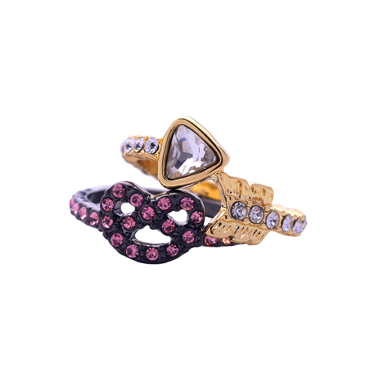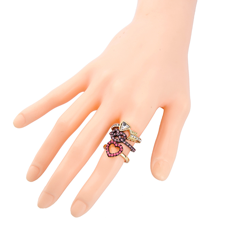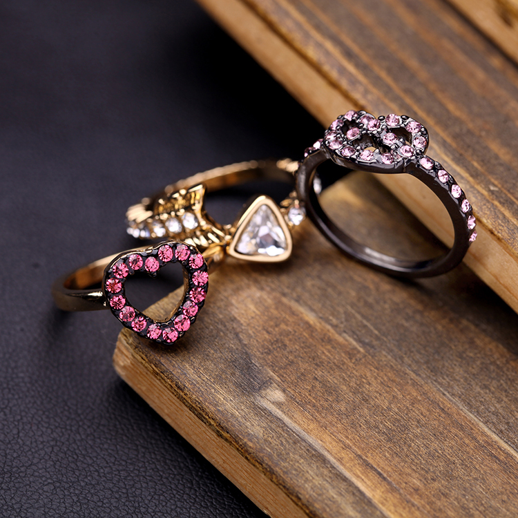 红色宝石戒指女 欧美复古宫廷风格 百搭个性三件一套镶钻女士戒指