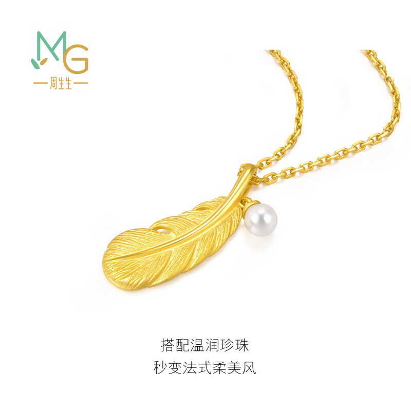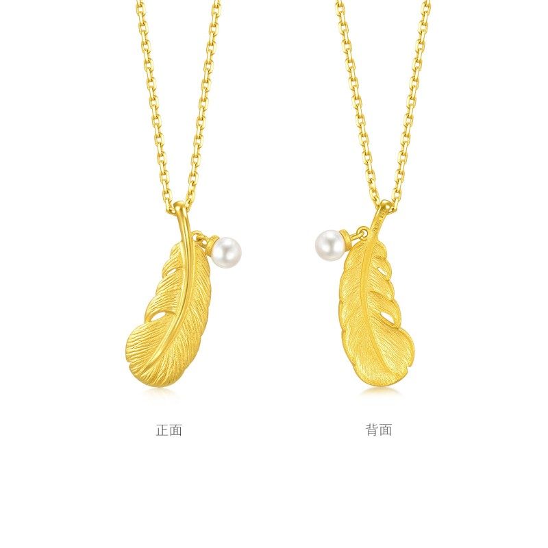周生生官方爱情密语羽毛足金珍珠黄金吊坠足金女生珠宝93640P