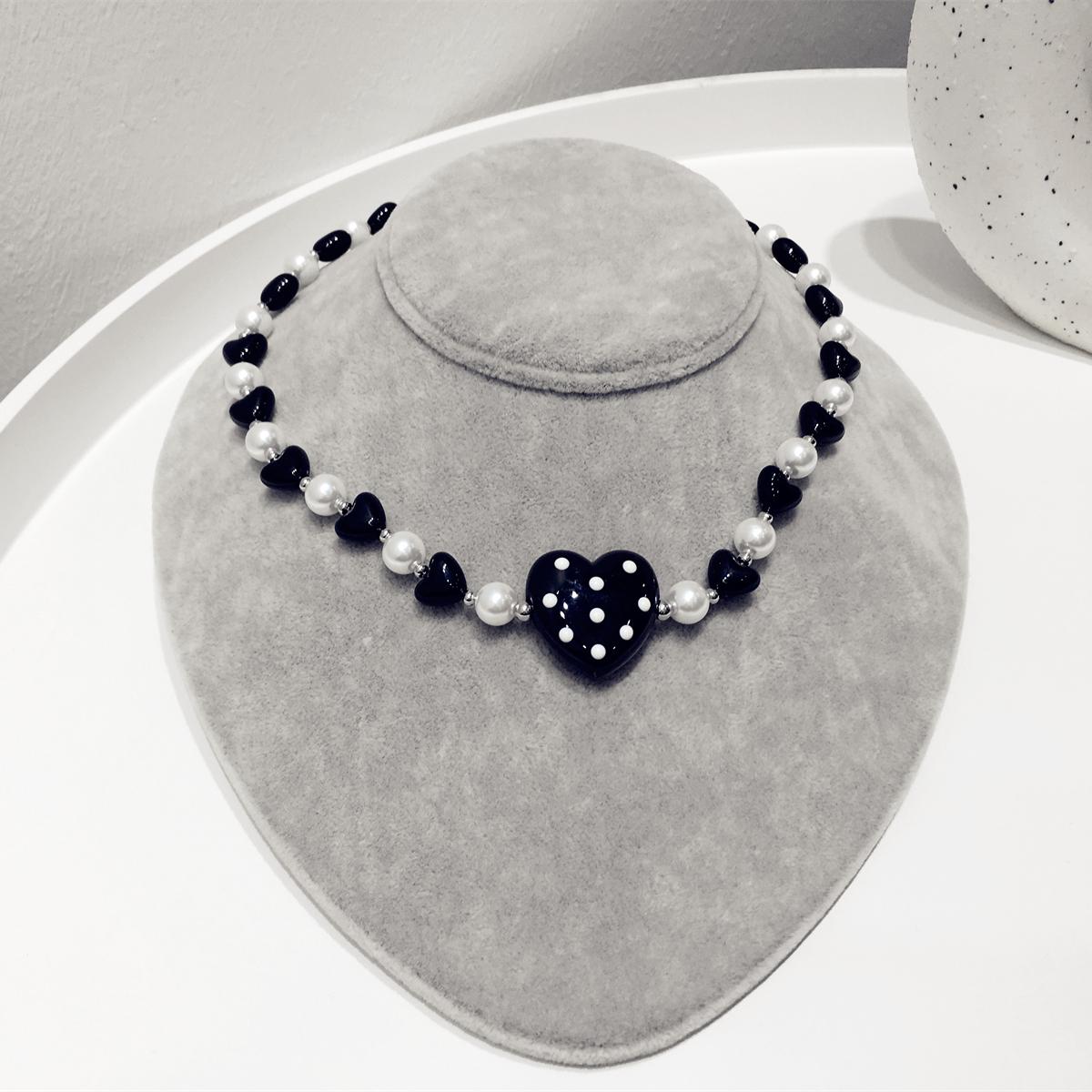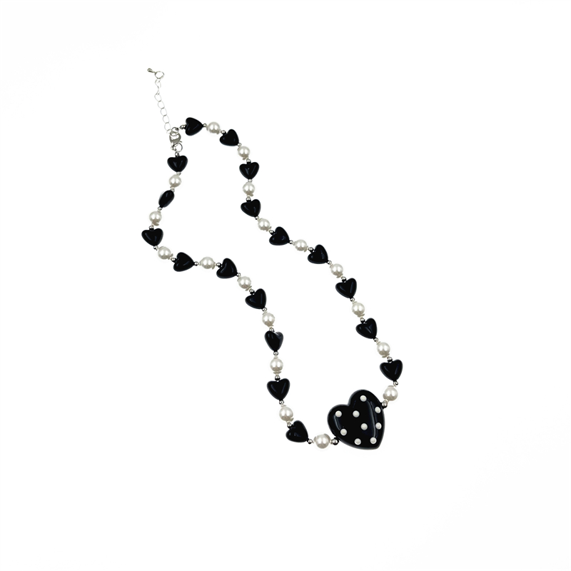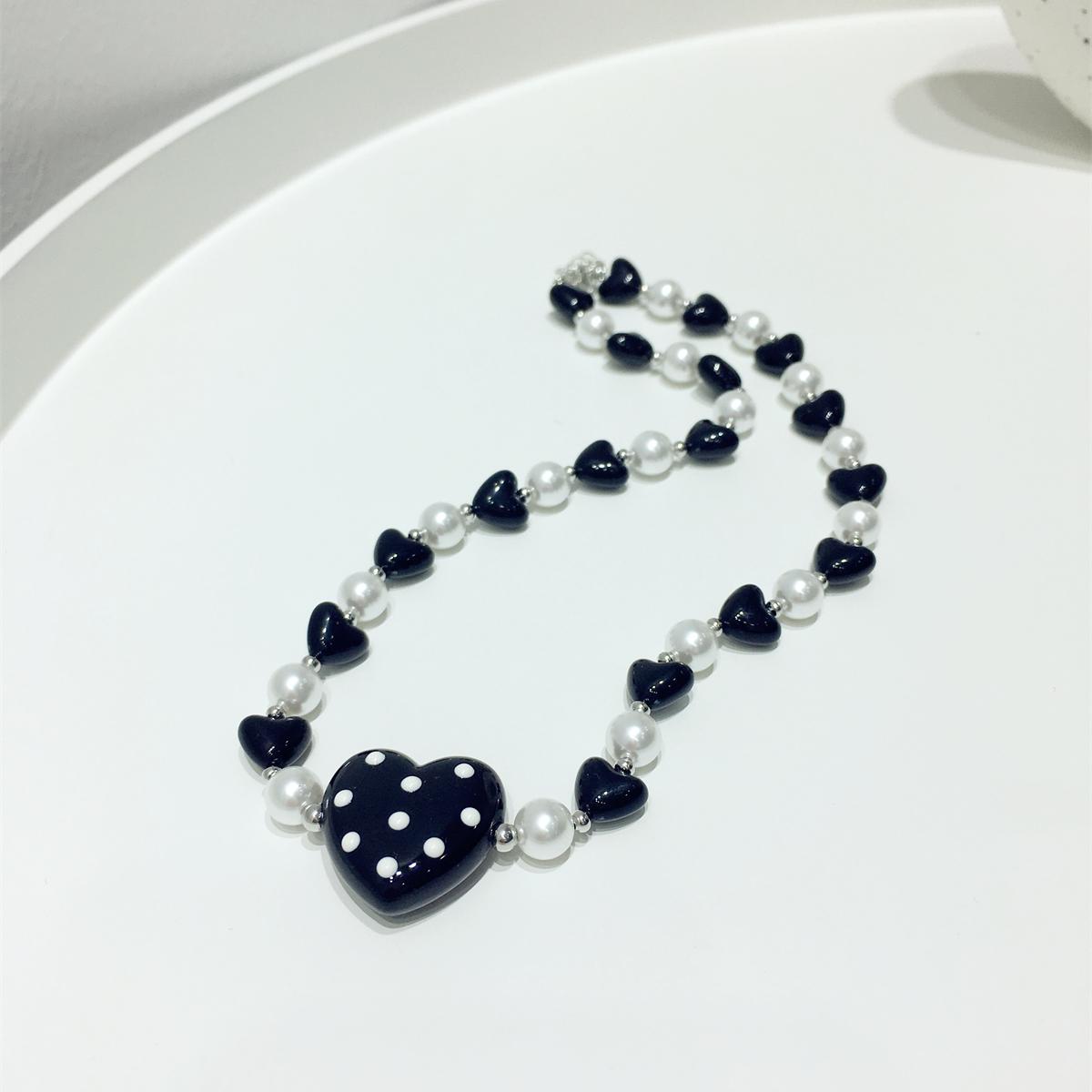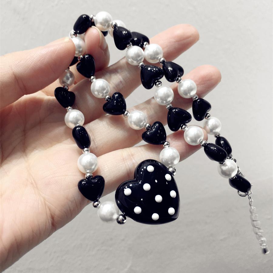 甜美气质可爱减龄波点黑色爱心桃心形人造珍珠项链锁骨链颈饰品新