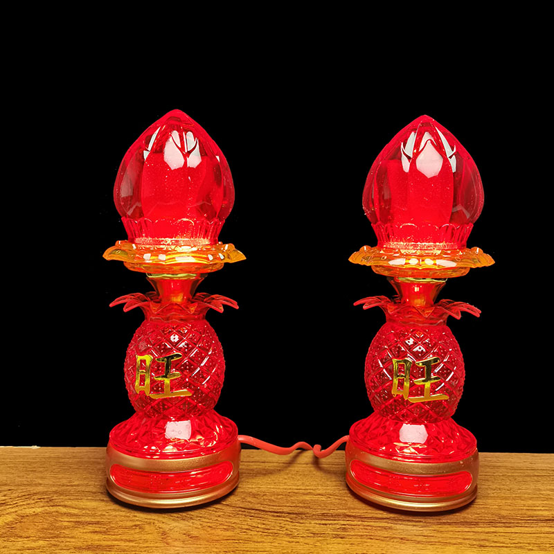 插电莲花蜡烛灯led财神灯招财一对长明灯