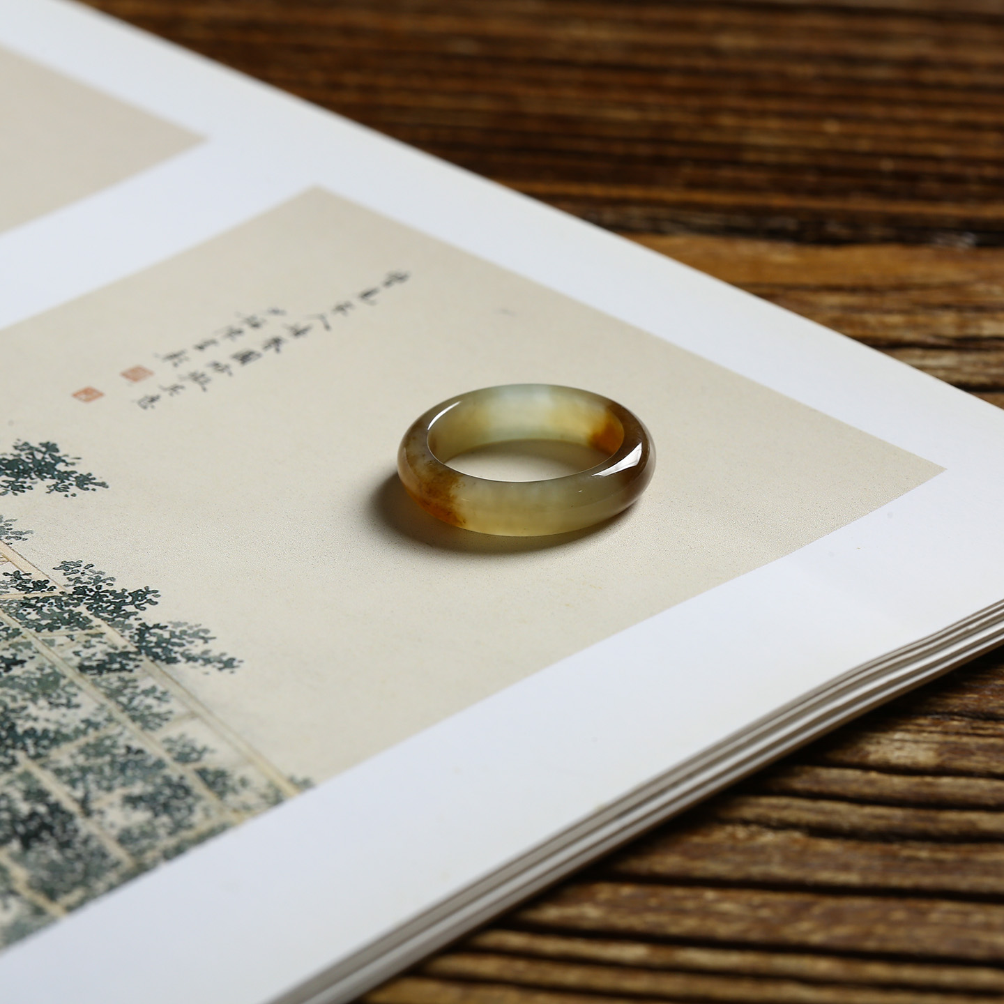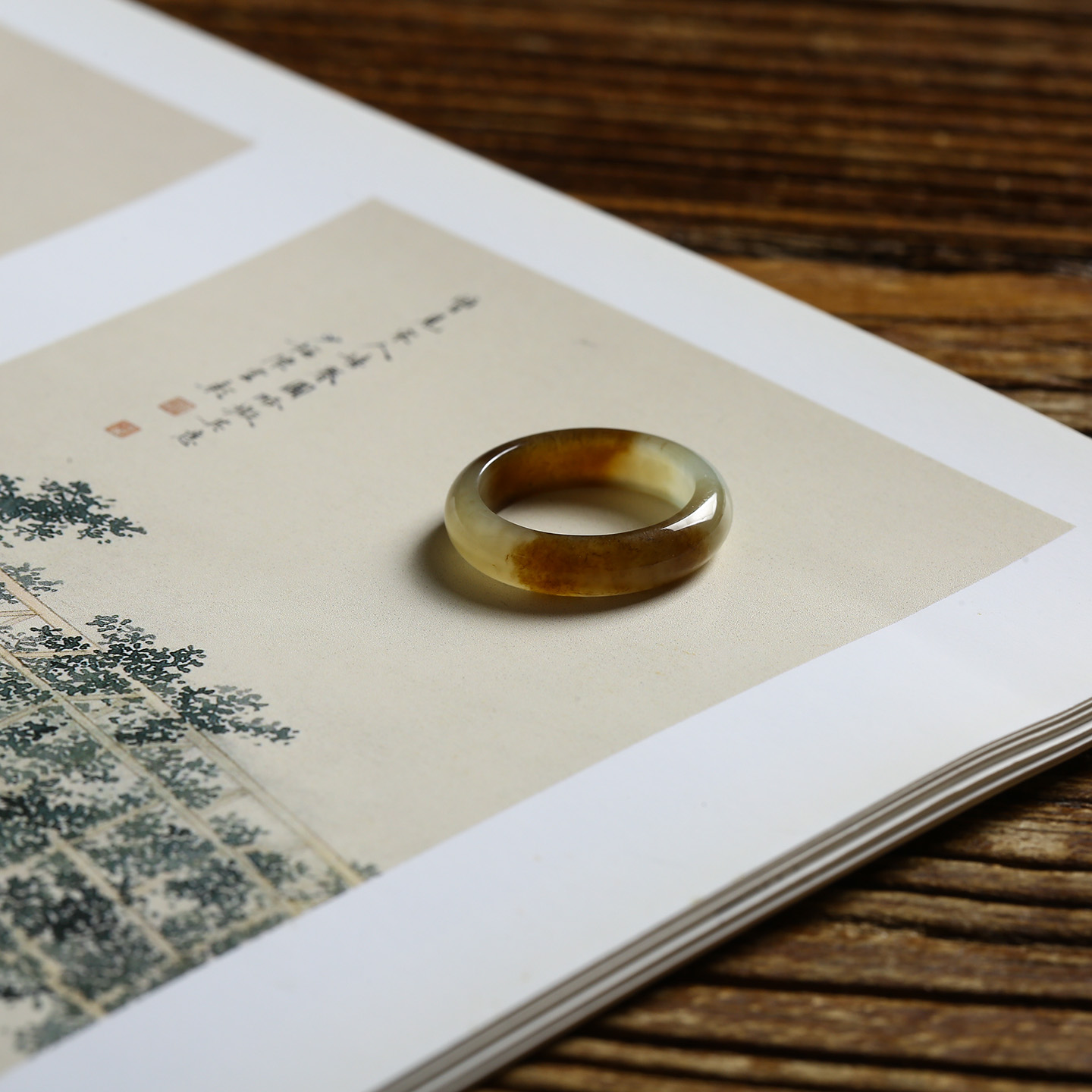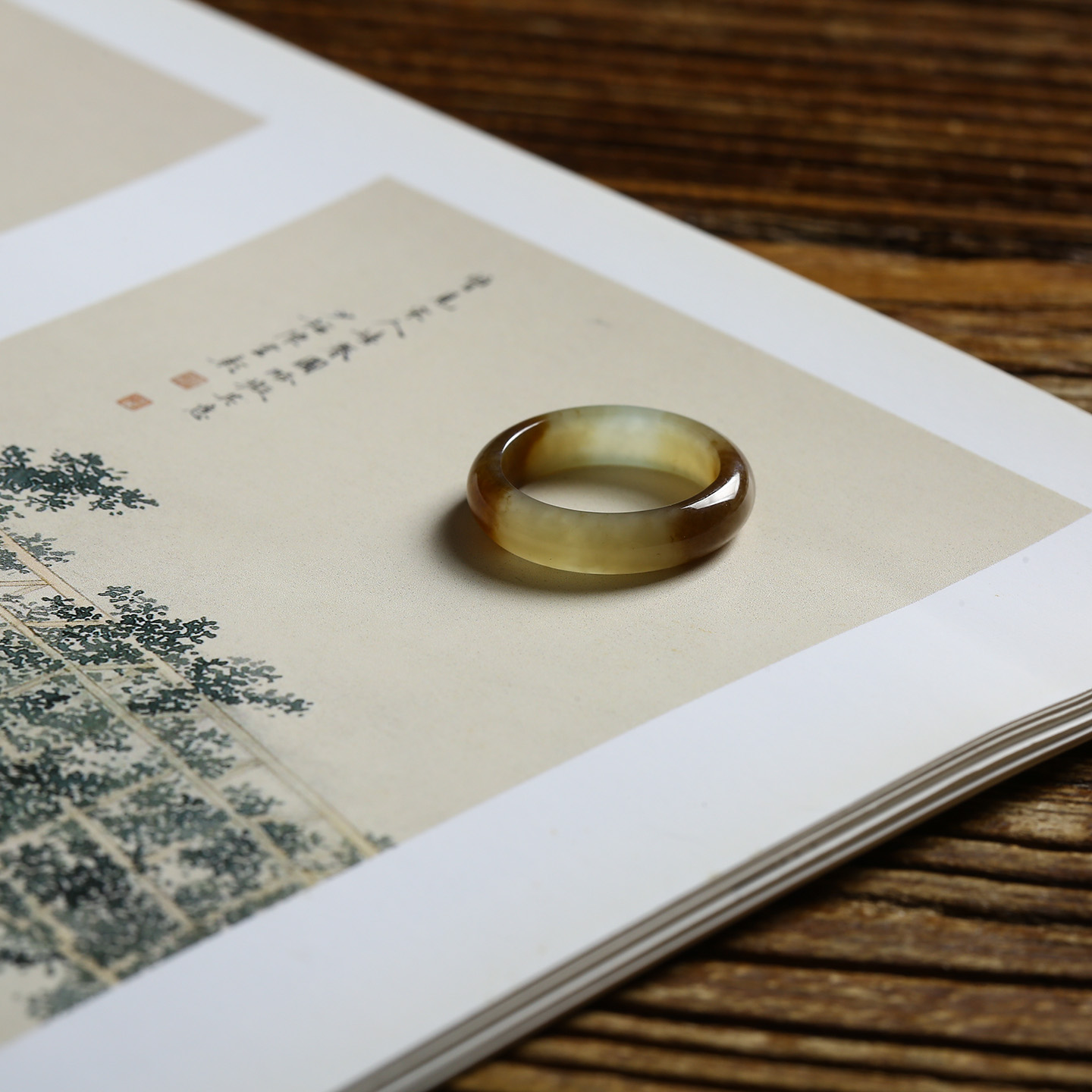 13号戒指 新疆和田玉糖料糖玉圆弧素圈指环 8236