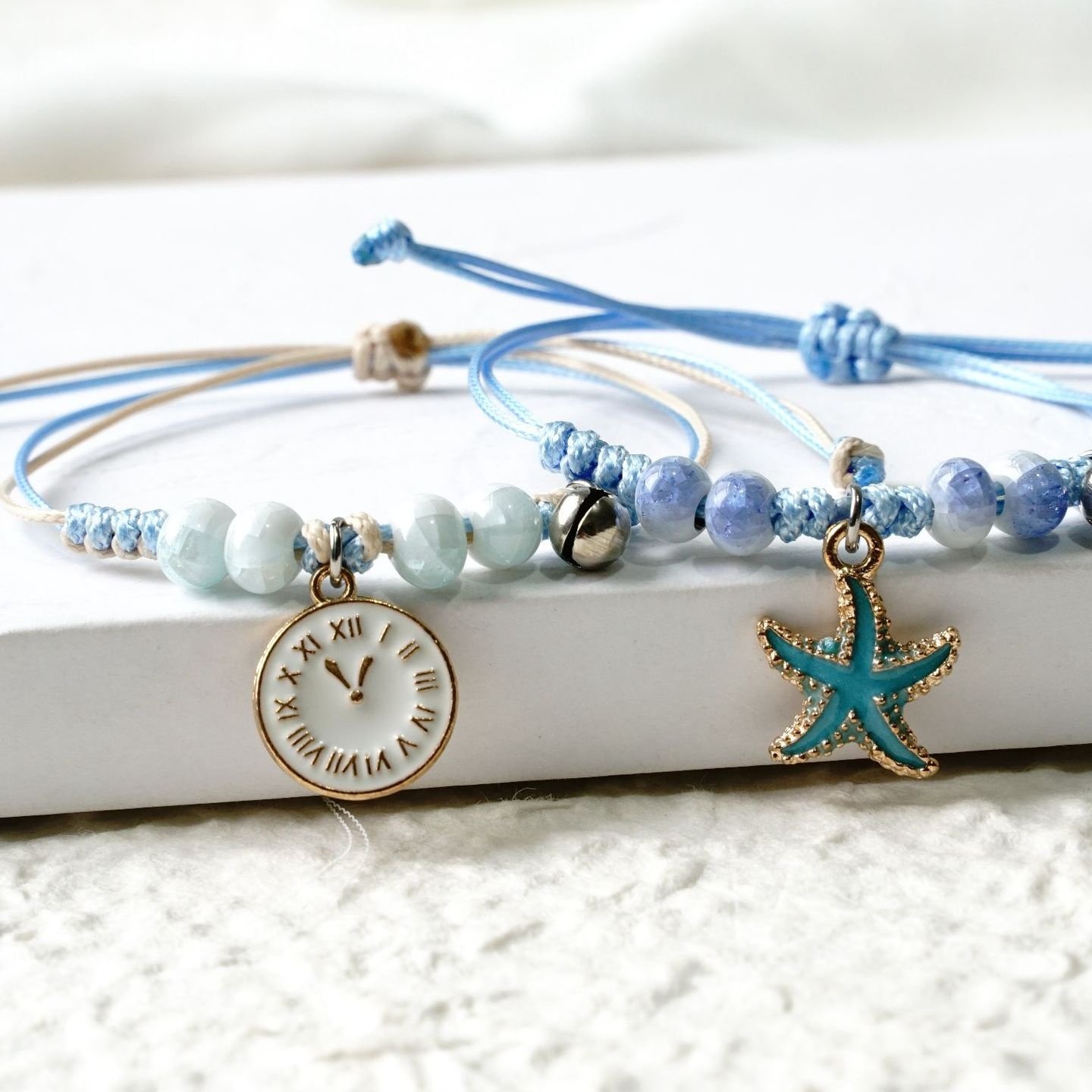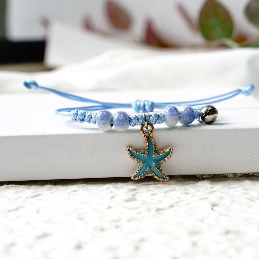 2026时尚韩版手工编织森系蓝色海星闺蜜手链情侣一对合金吊坠手串