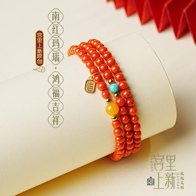 宫里上新南红手串女天然正品红玛瑙手链红色官方旗舰店本命年礼物