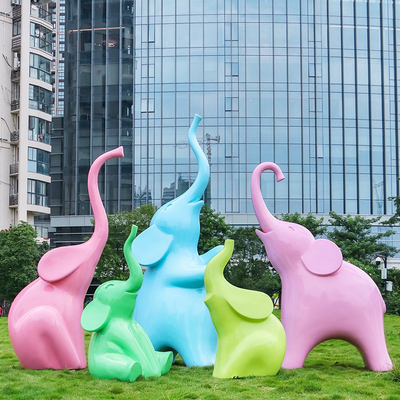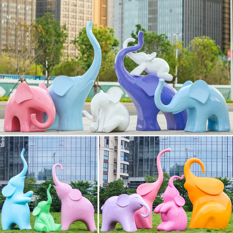 户外卡通大象玻璃钢雕塑商场抽象动物模型园林景观小区房地产摆件