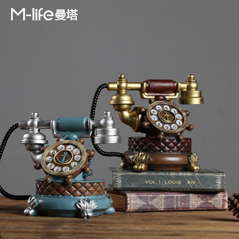 曼塔 复古电话机怀旧书柜小摆件酒柜书柜书架摆设美式书房装饰品
