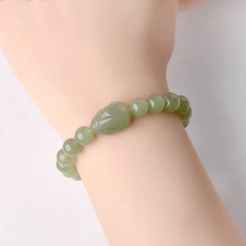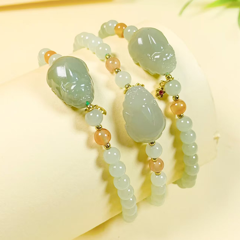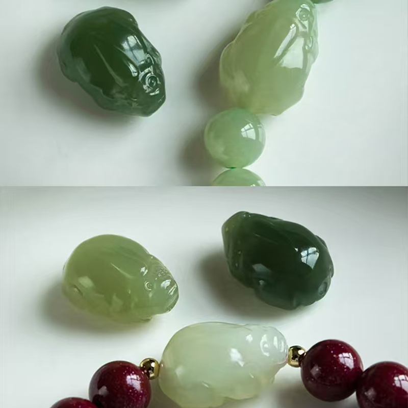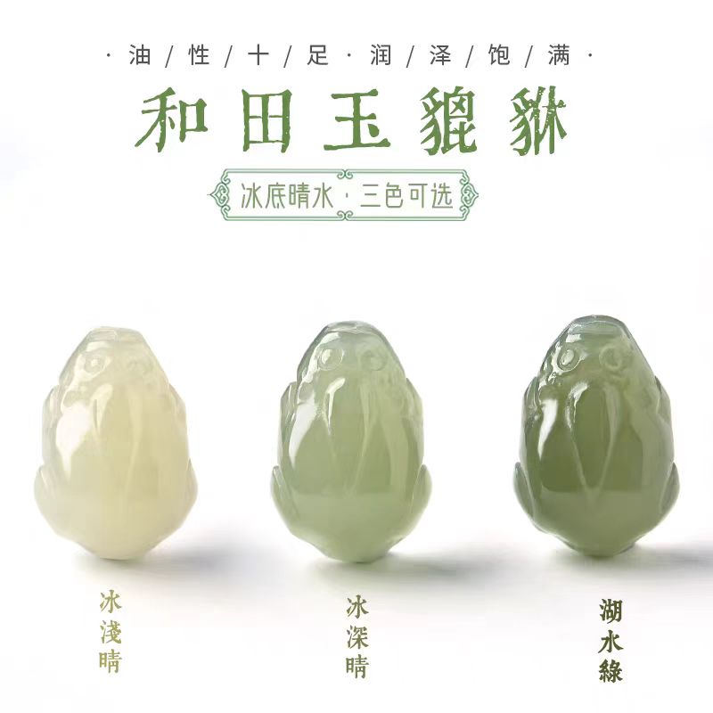 和田玉貔貅通孔手链款17*12mm天然玉石手串配饰青海料晴水挂件女