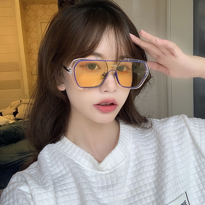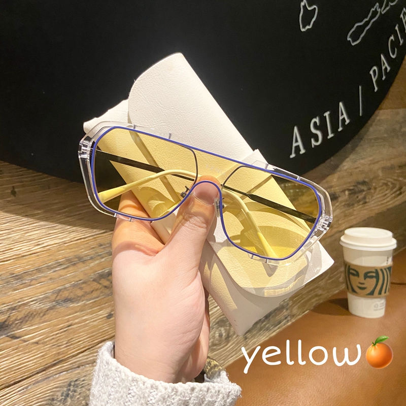 韩版网红连体大框黄色圆脸墨镜男女小红书大脸显瘦开车太阳眼镜潮