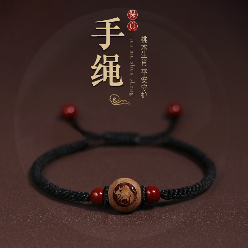 桃木手串转运珠12生肖女士护身符婴儿红绳编织绳手链男款朱砂手绳