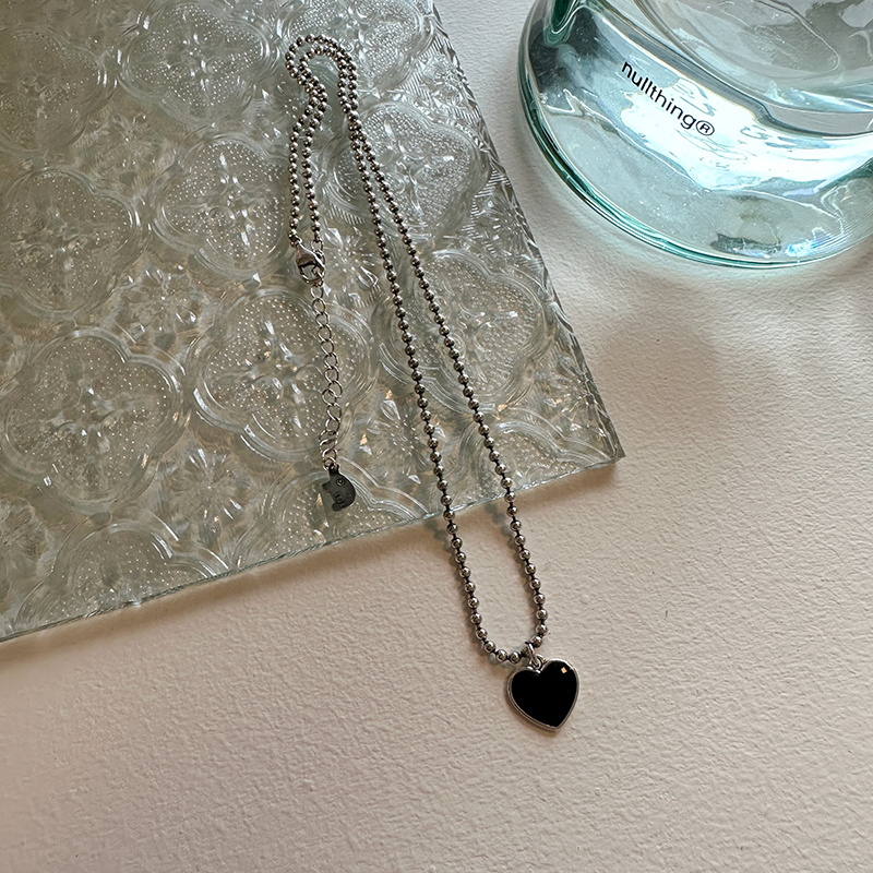 韩国黑色爱心项链女短款锁骨链纯银轻奢小众设计高级感ins嘻哈潮