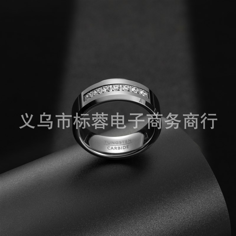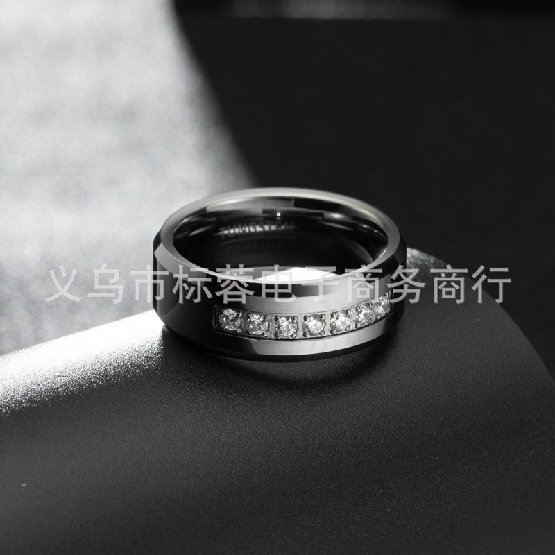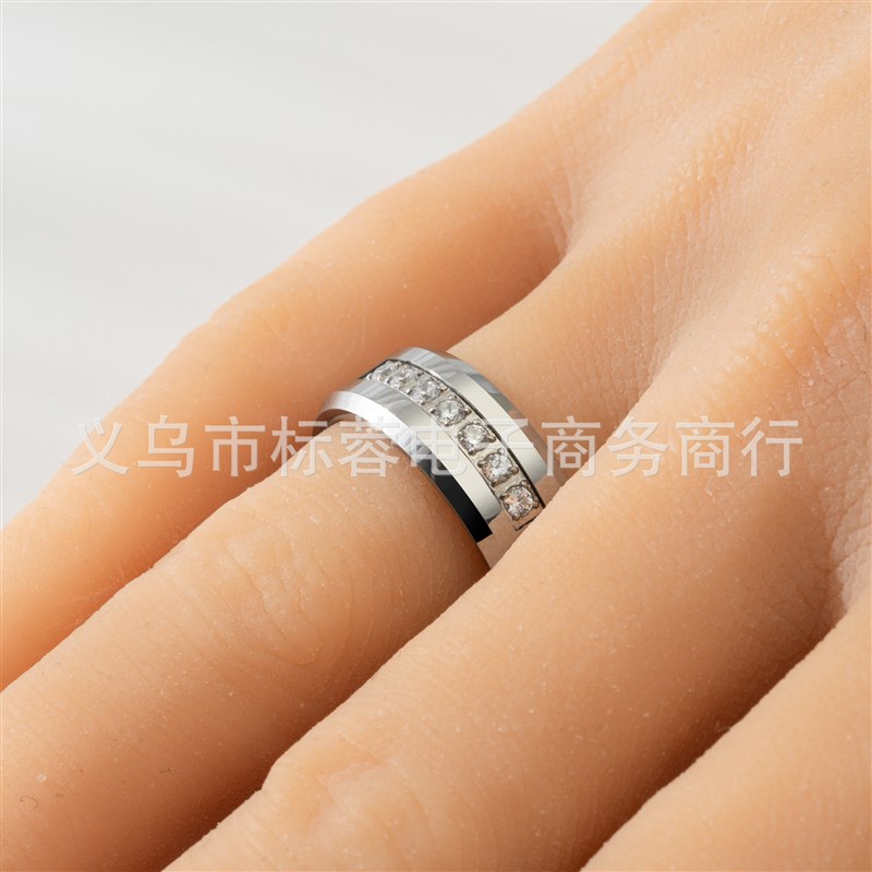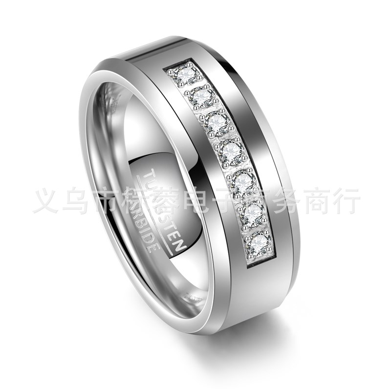 现货一件代发8mm镶嵌锆石本色男士钨钢戒指美S码7-14含半码