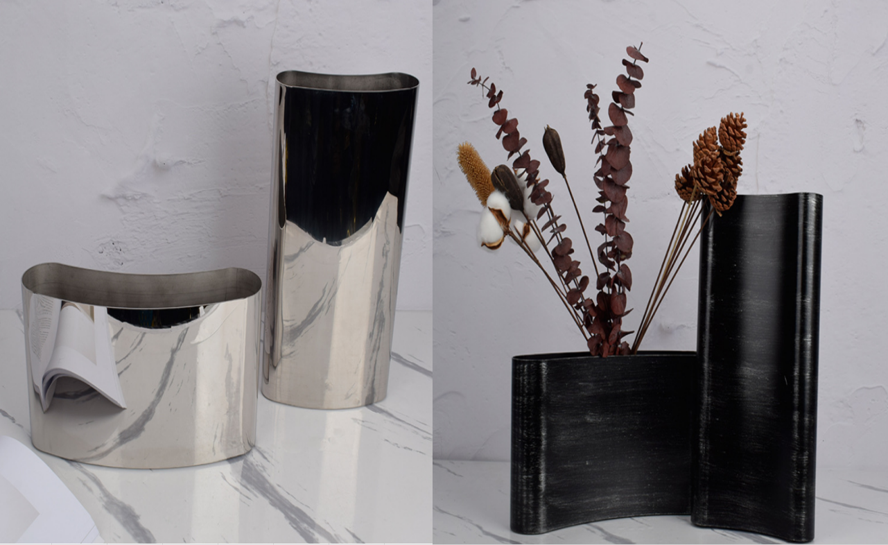 现代简约创意合金花器花插花瓶样板房售楼处茶几玄关桌面质感摆件