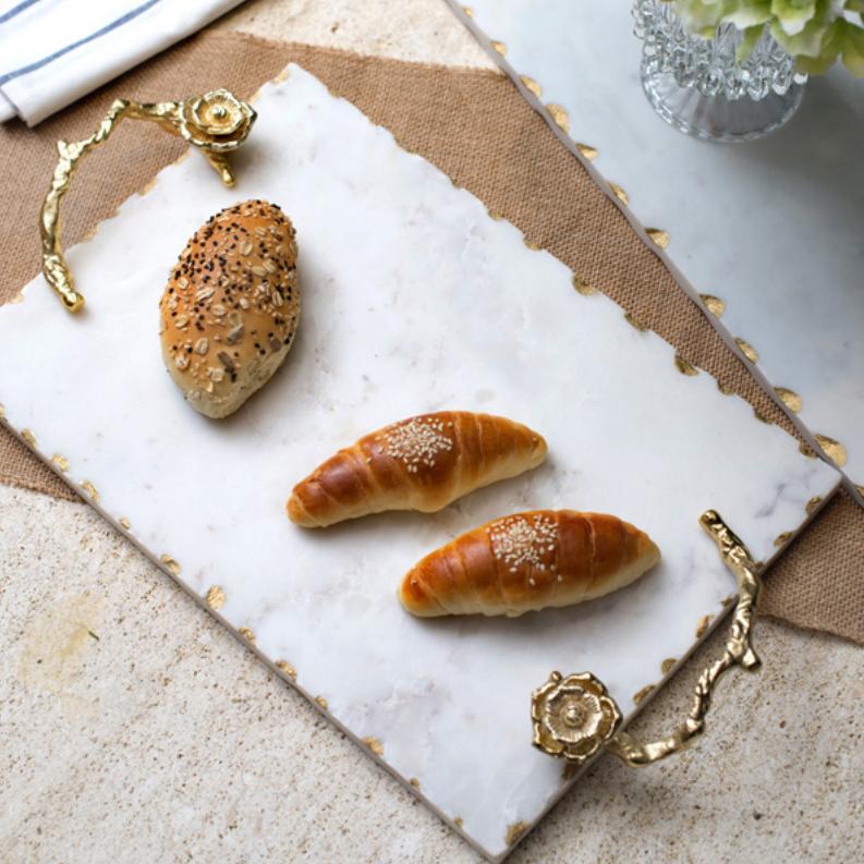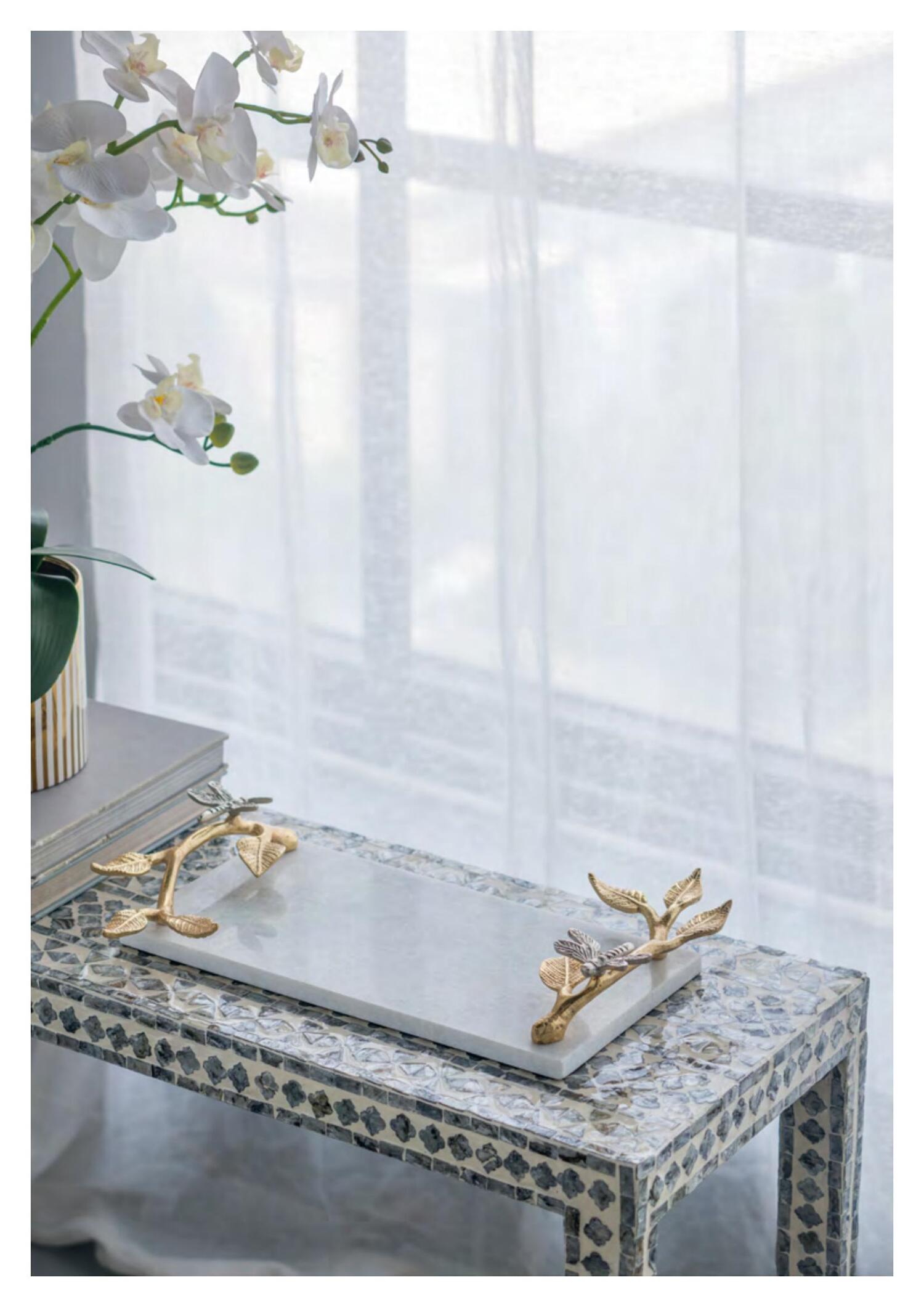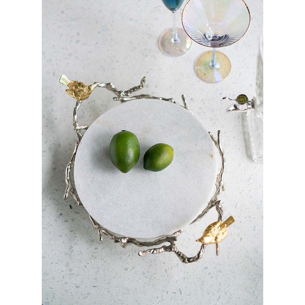 AB印度进口手工锤纹铝制品金枝鸟大理石托盘轻奢果盘桌面摆件饰品