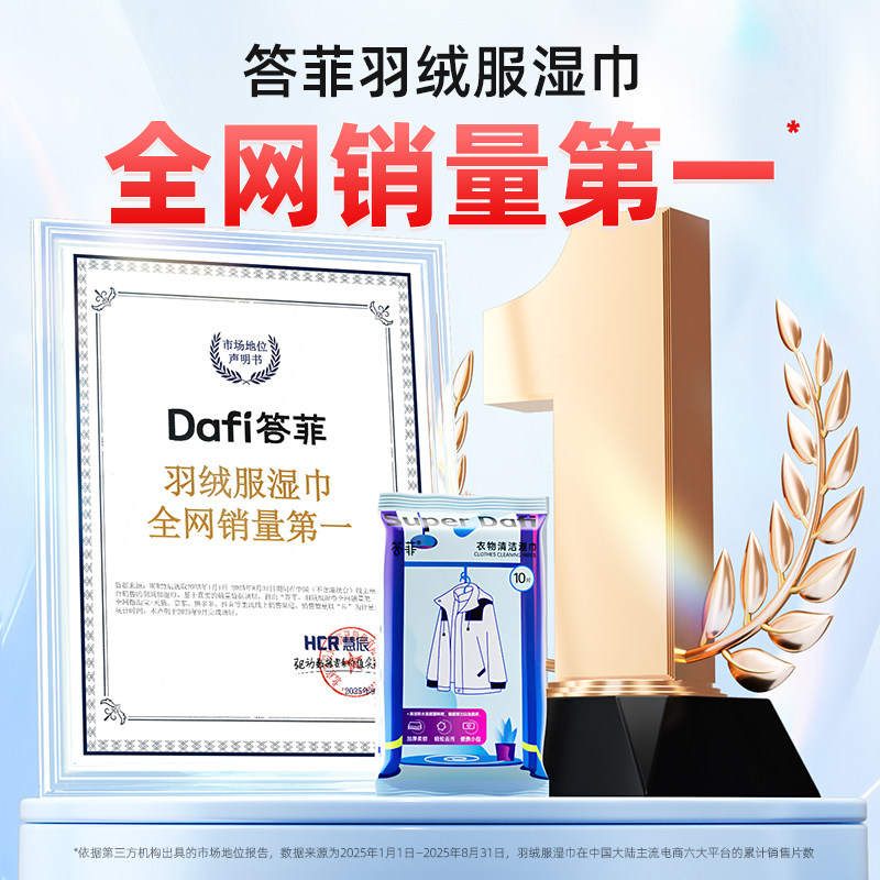 答菲羽绒服清洁湿巾免洗强力去污衣物去污渍专用去渍湿纸独立包装